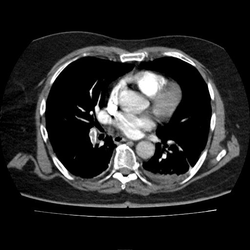 Angiotomografía de tórax con contraste intravenoso en fase angiográfica pulmonar.